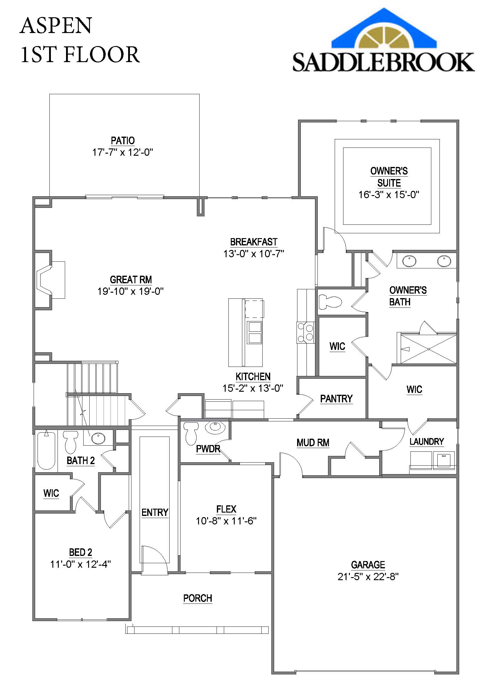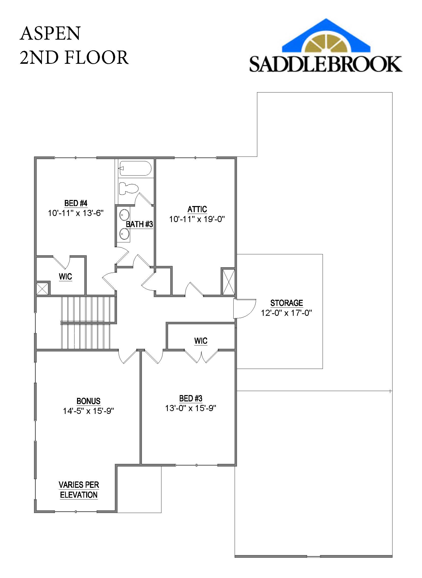 The Aspen’s open floor plan is excellent for entertaining! The spacious entryway seamlessly transitions into the expansive great room, creating a welcoming and spacious area for socializing. The great room flows into the beautiful kitchen, where you'll find a large island, ideal for accommodating large families or guests, and a roomy walk-in pantry for storage needs. The Aspen also offers a spacious main-level master suite with an elegant tray ceiling, a large bathroom, and roomy walk-in closets. The laundry room is connected to the master offering the ultimate convenience. Additionally, the flex room on the main level is versatile and can serve as a formal dining room or a spacious home office. Another valuable feature is the additional bedroom on the main level, making it an excellent choice for a guest suite. The second floor features two bedrooms with roomy walk-in closets and direct access to a full bath. The bonus room with a sitting area can be converted to a fifth bedroom with an optional bath. You’ll love the ample space in the large walk-in attic storage area. The Aspen includes a standard two-car garage and oversized mudroom. Additional garage space can be added if a workspace or third garage bay is desired.